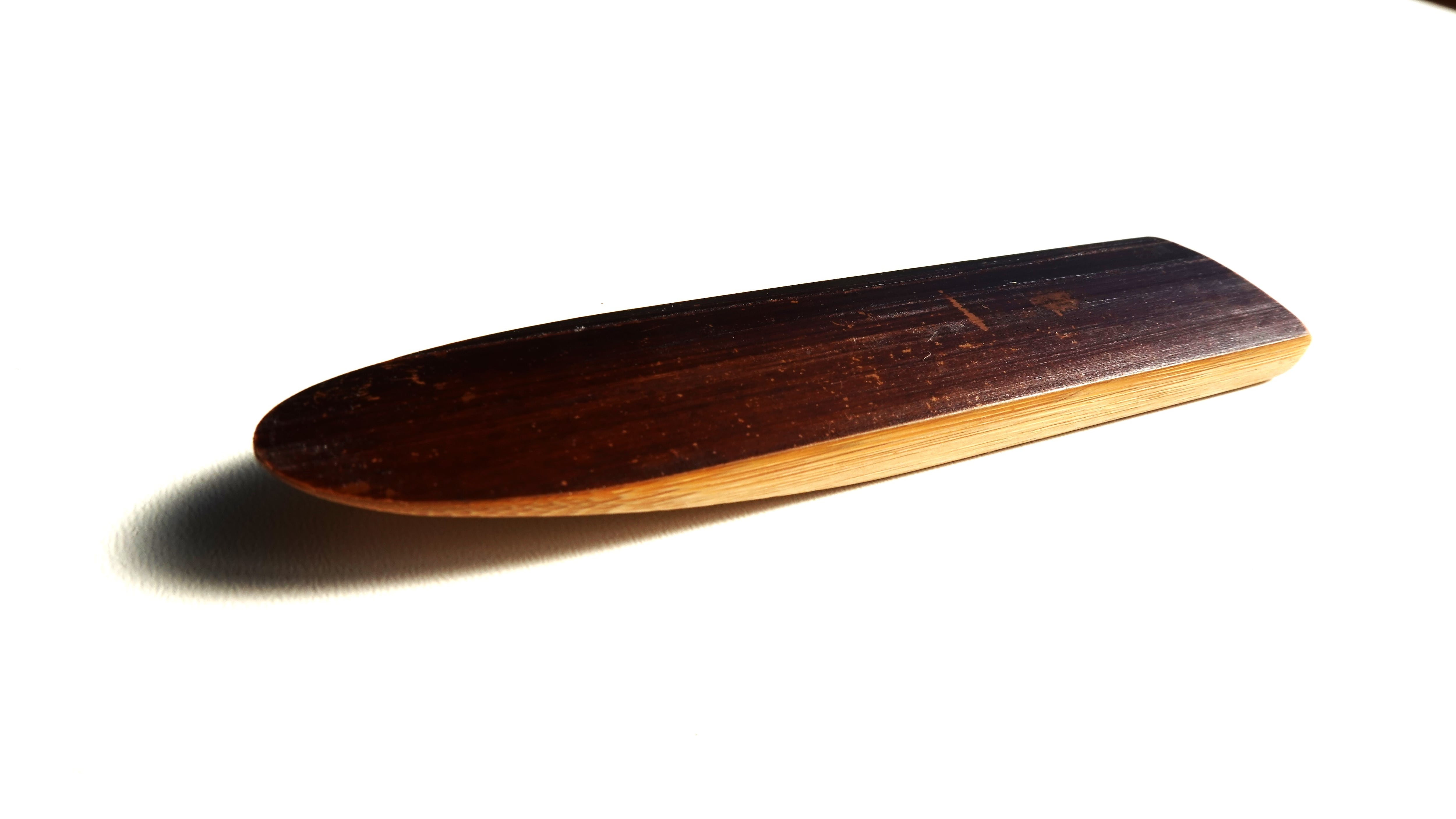 本製品は燻製竹の表皮を残して製造しているため、表面に天然のキズや色ムラが生じる場合がございます。天然竹ならではの味わいとしてご理解ください。稀に、肌色箇所に黒い斑点が見られることがありますが、これは竹特有の成分が酸素に触れて変色したものであり、カビではございません。衛生上の問題や人体への影響はございませんので、安心してご使用いただけます。